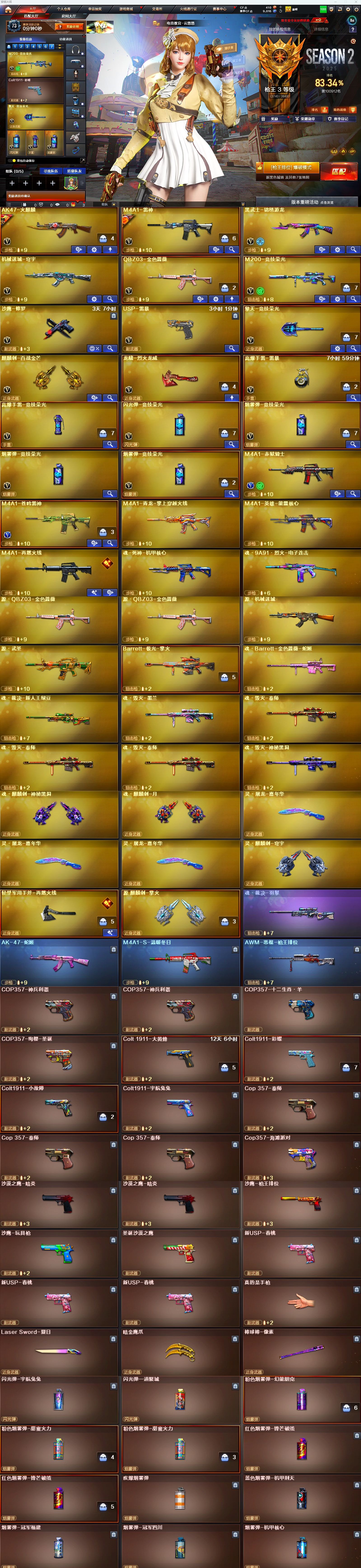 编号DA107 东部【浙江一区】可排位 云悠悠 竞技荣光幻神 qbz金色蔷薇 雷神 火麒麟 擎天竞技荣光 麒麟刺百战金芒 龙啸 竞技荣光手雷套